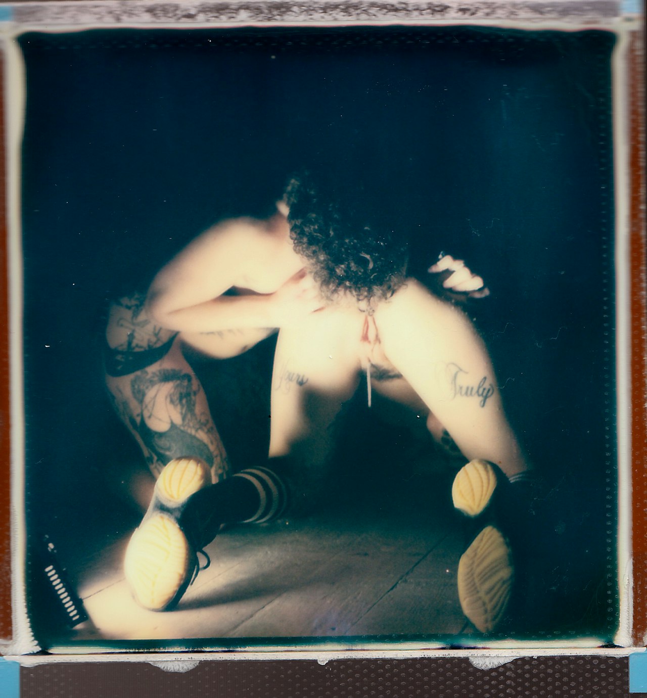 I asked Kinsey and Dev to bring their best leather and white vests and we got to work. This is where working with performers in collaboration is my favourite because they took our seed of an idea and expanded it beyond our perspective. Kinsey and Dev suggested and worked out the idea of injecting T and as someone who has an amount of needle phobia I’ve always found injections uncomfortable. Getting tested pretty regularly forced me to meet that fear head on but I also found that if I asked my phlebotomist if I could film the blood draw on my phone it gave me the focus and detachment to be able to watch. A camera is a good way to put distance between you and a subject.
