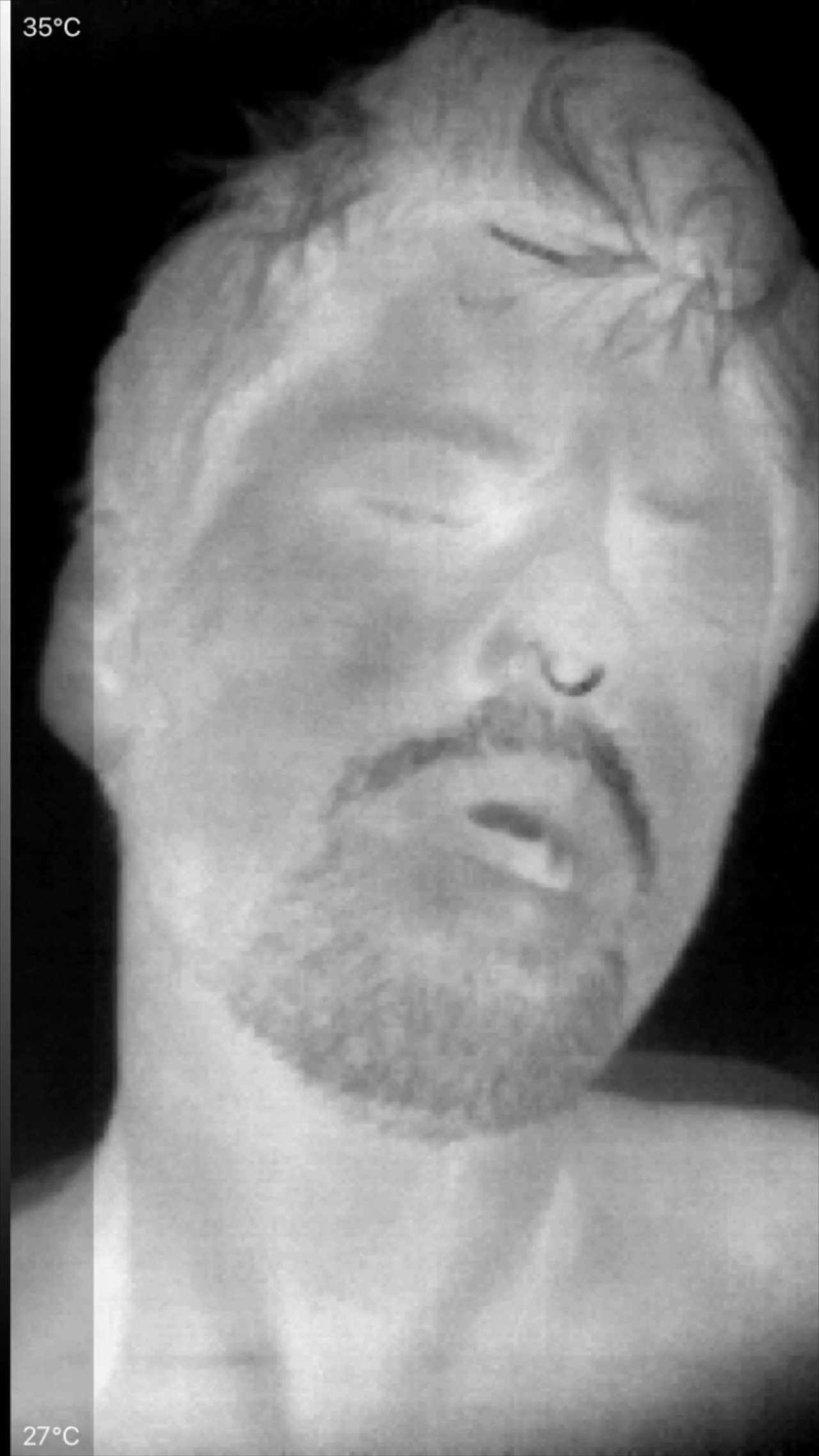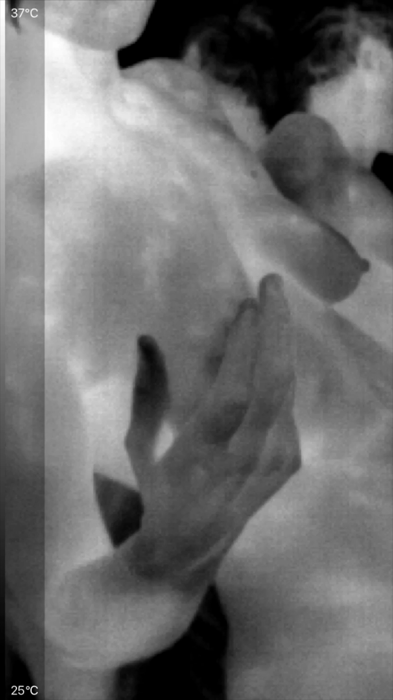 I thought it would be piece of kit that would be so expensive it wouldn't be viable for us but I found out you can get one that PLUGS INTO YOUR PHONE, technology is very very good sometimes and the results are so fucking cool. Wetness, cold appears dark and heat is white. Inside the box basically everything is very warm but the almost radioactive glow of genitals and mouths contrasted with the black spit, blood and teeth is everything I'm about.