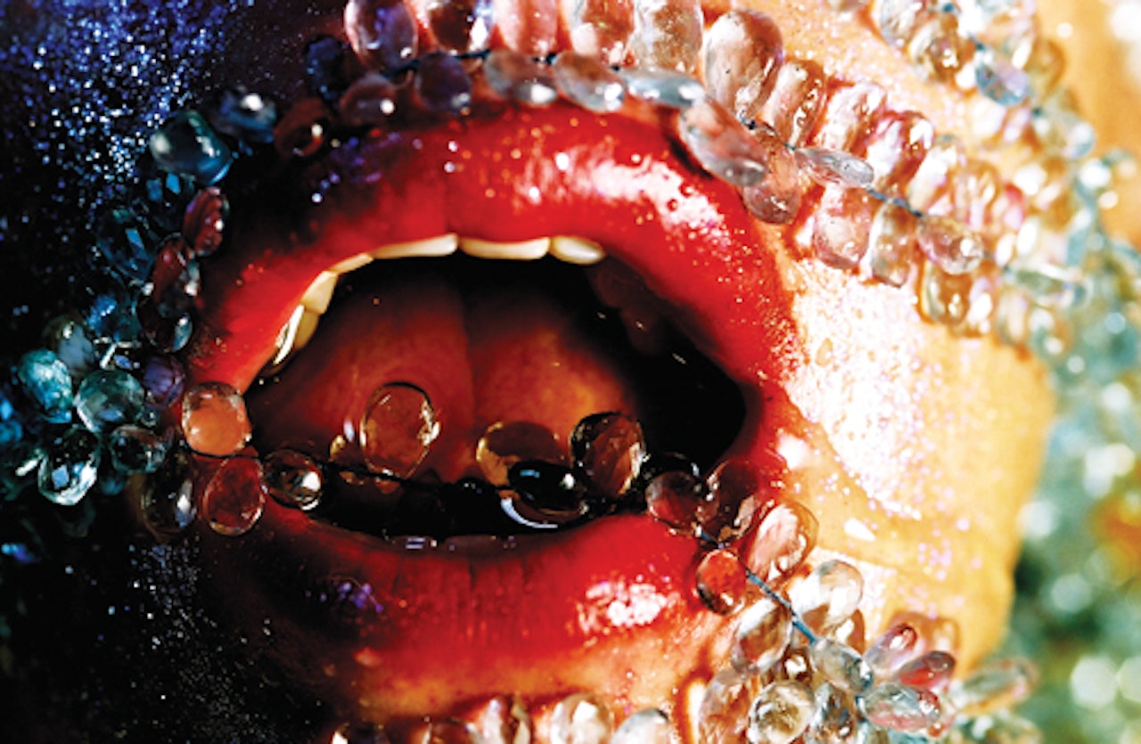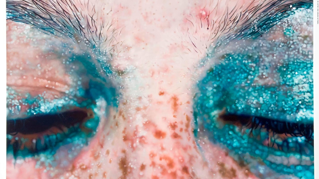 Her work often uses hyper-real depictions of exaggerated feminine tropes. Glistening lips, messy, heavy shadowed eyes and sticky skin all bursting through in glossy, high fashion parody, extreme close up. So intense and excessive they take the language of glamour and show the visceral filth beneath.