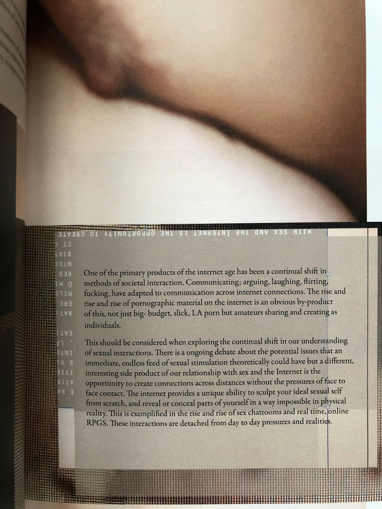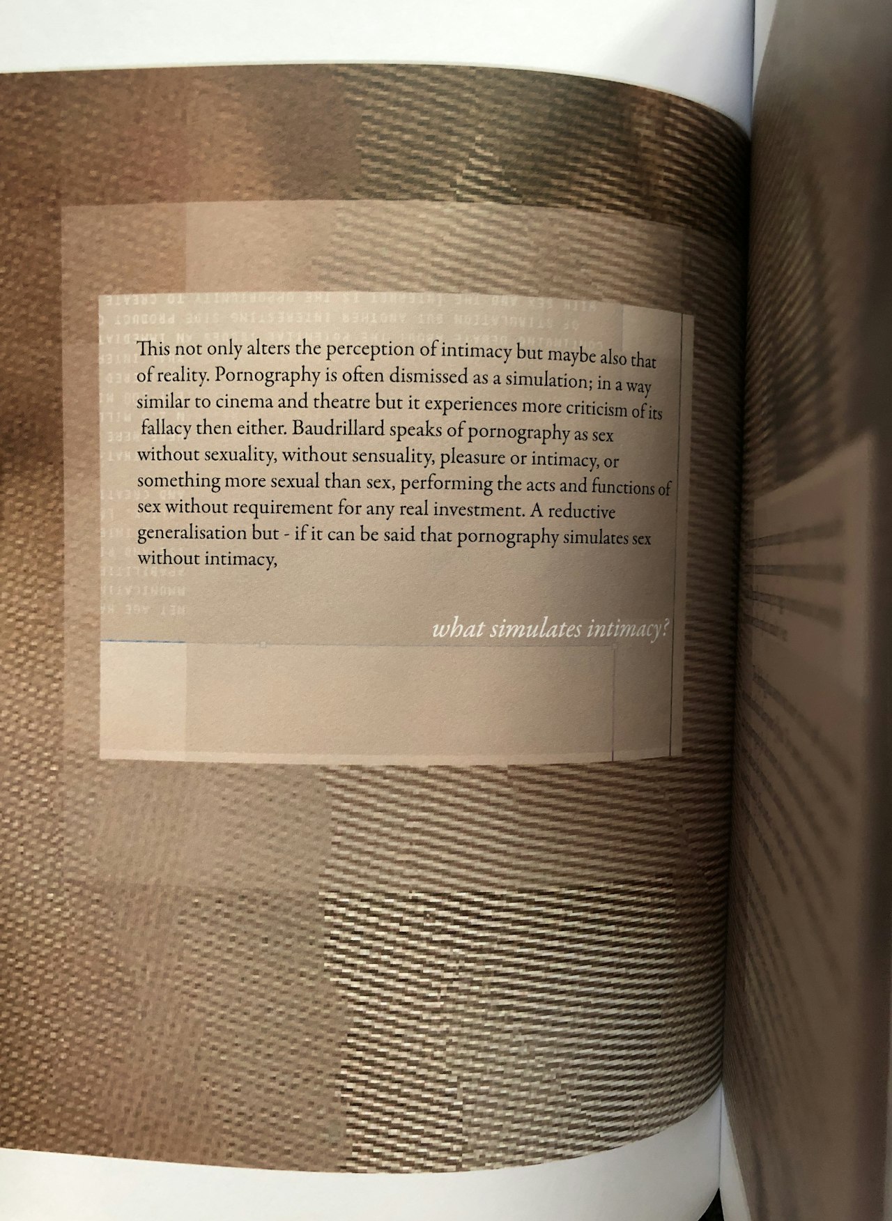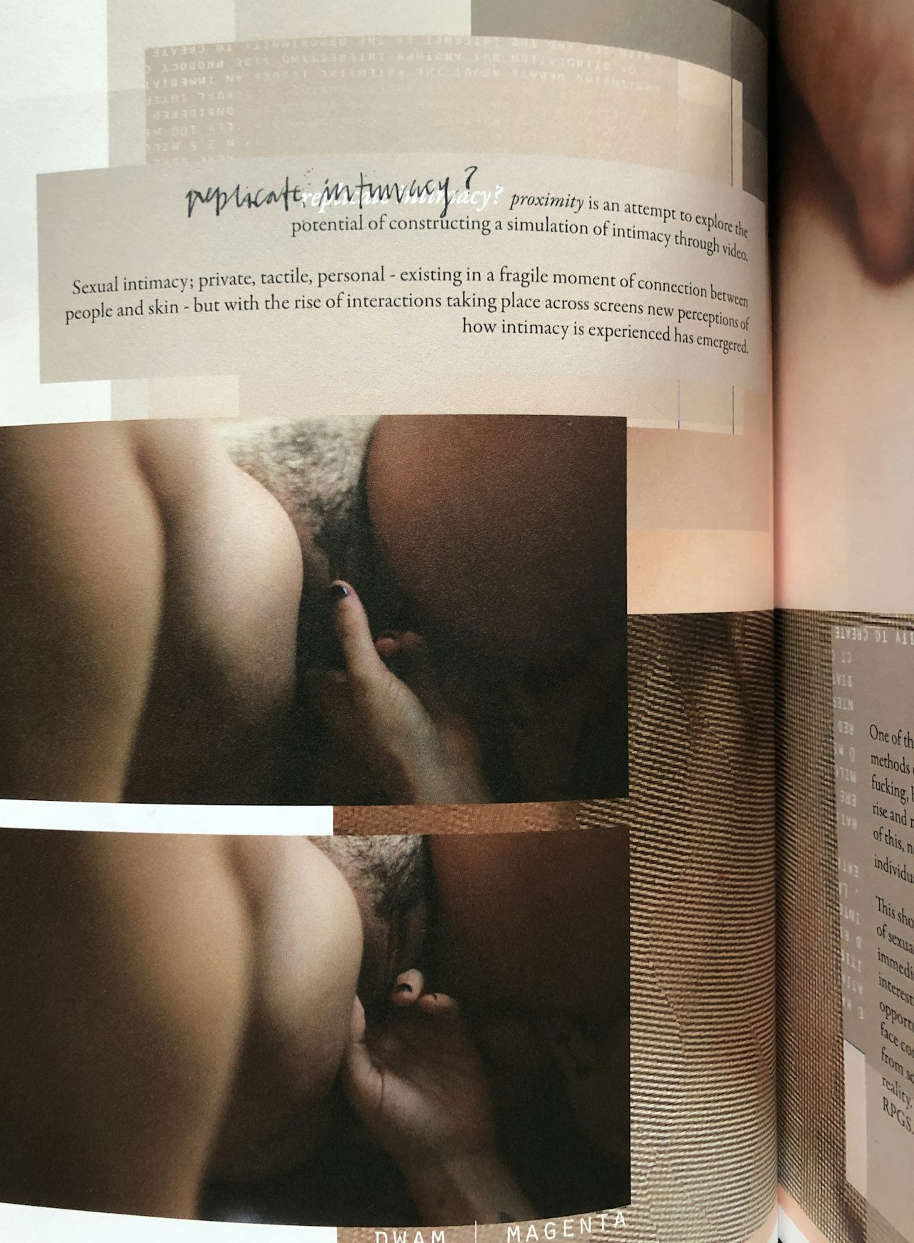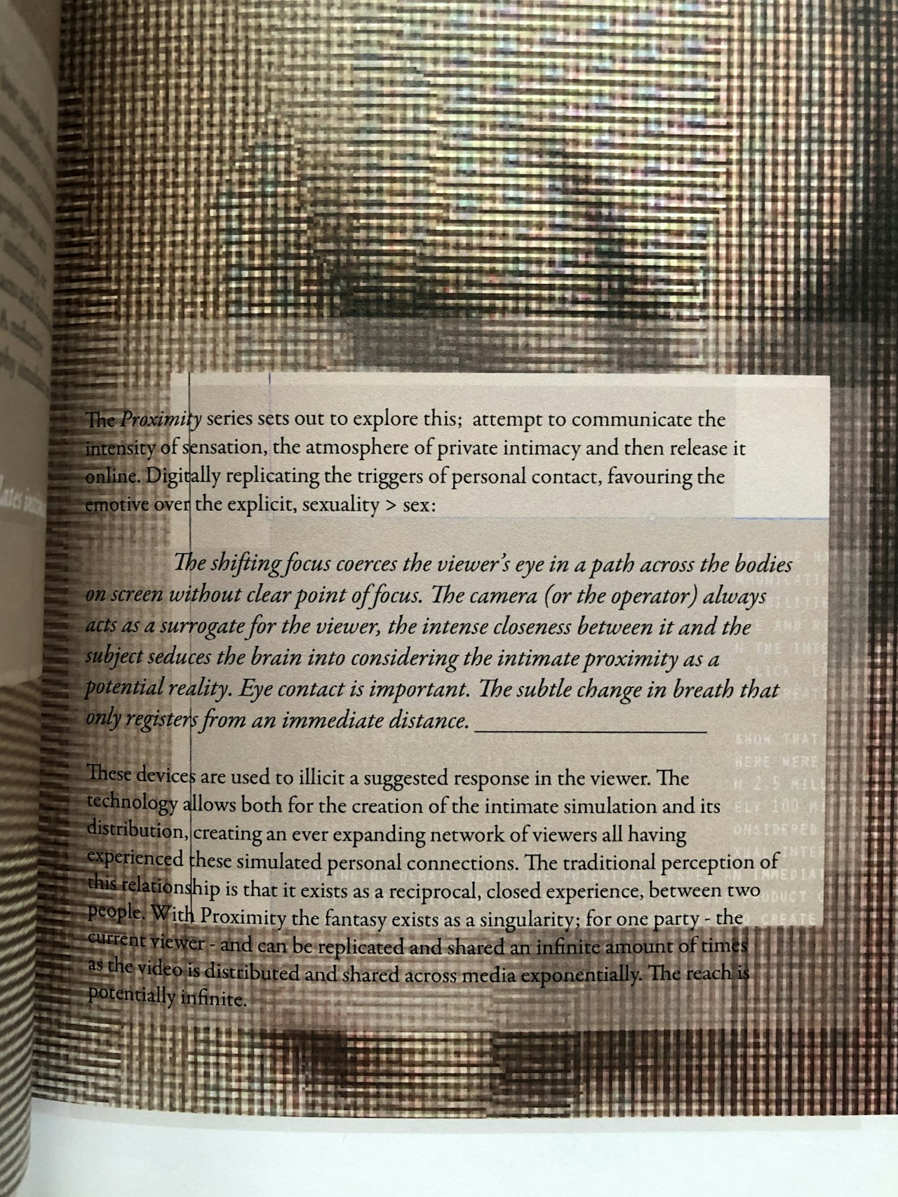 I'll end by including some pages from our first book on the proximity project about replicating intimacy through video work and fucking and watching through screens.