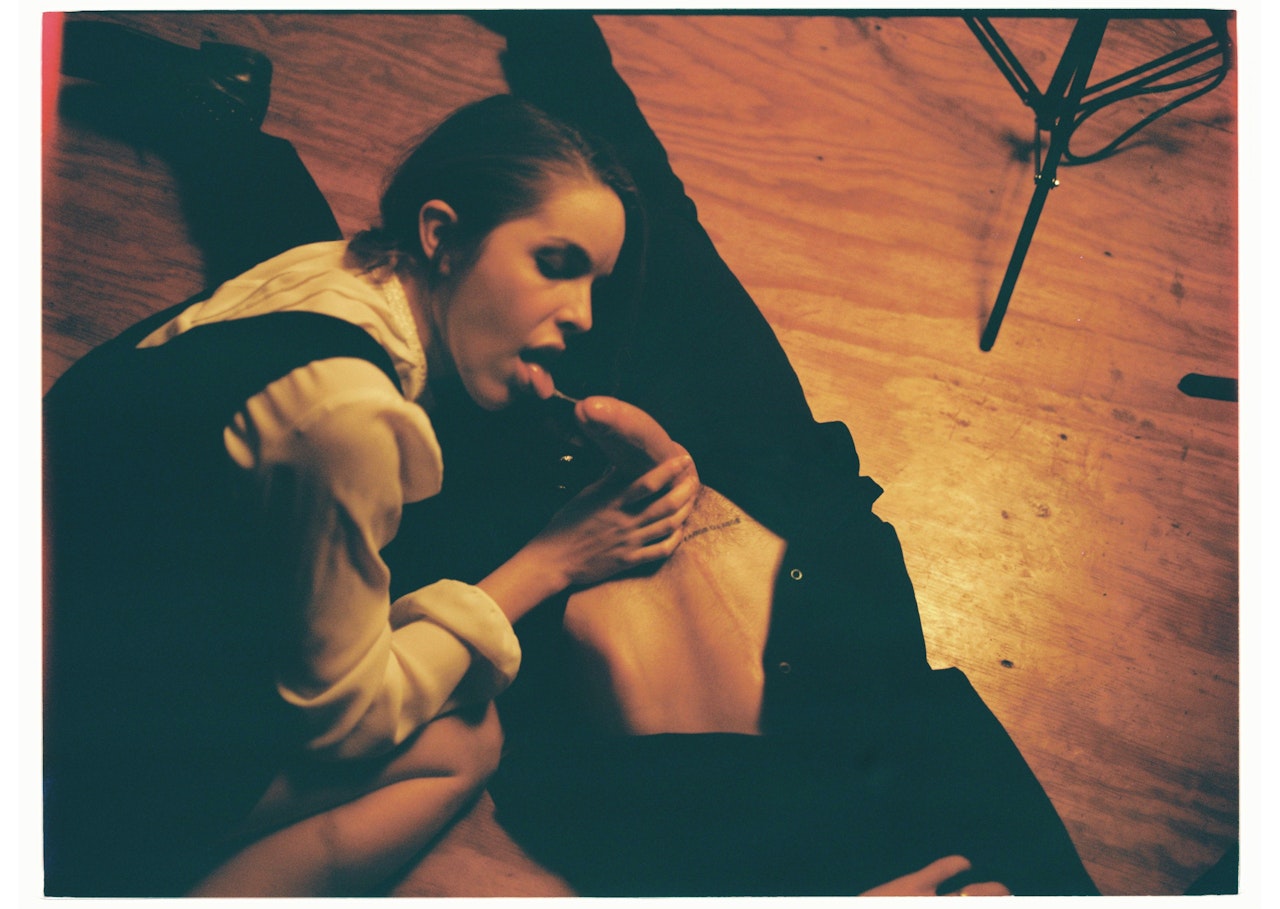 Shot on a summer night in an attic room in Los Angeles with Amarna and Owen (who borrowed this dog collar from the Kink wardrobe department) - it's probably one of the first and only Four Chambers films where we stay, mostly, fully dressed. I love naked bodies and skin but something about the conceal reveal, tactile layers and tease of clothes is really hot to me and I love fucking with clothes on in my personal life.